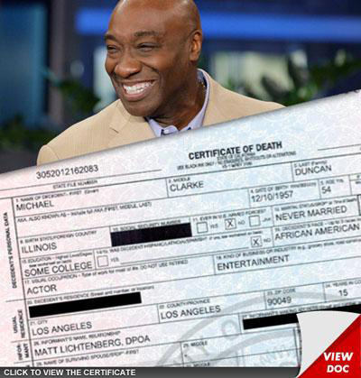 За даними експертизи, американський актор Майкл Кларк Дункан, найбільш відомий своєю роллю Джона Коффі у фільмі «Зелена миля», помер від дихальної недостатності, до якої призвели кілька захворювань в сукупності.