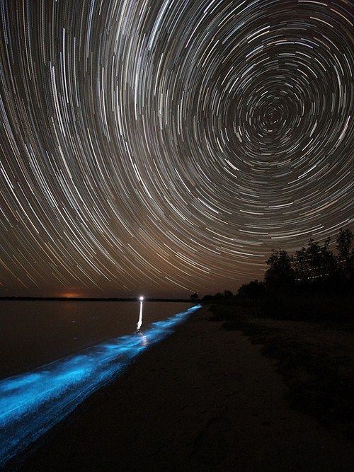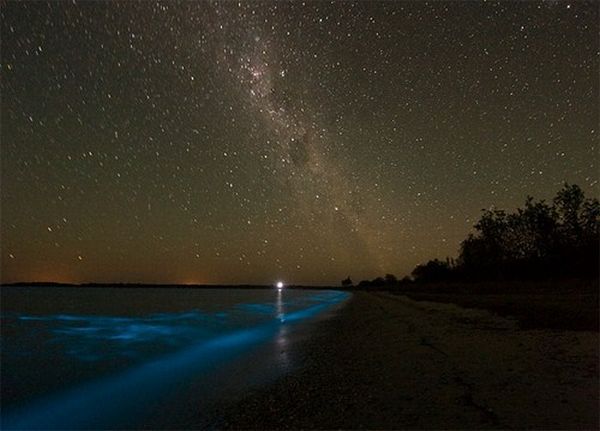 Дивовижне природне явище можуть спостерігати жителі і туристи Австралії на одному з Гіпслендскіх озер. В результаті природних катаклізмів – повеней, буревіїв і лісових пожеж – у воді осідають деякі поживні речовини, які викликають бурхливе зростання одного виду водоростей. Цей вид водоростей – один з небагатьох, який здатний світитися в темряві. У підсумку, озеро стало світитися блакитним світлом і виглядає воно як велика неонова лампа. Вражаюче видовище! Таке явище в останній раз спостерігалося 120 років тому.