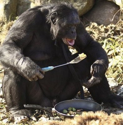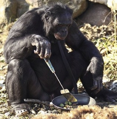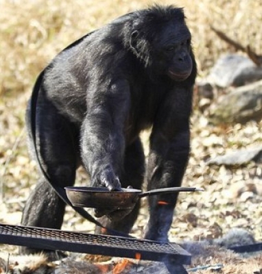 Зараз 31річний шимпанзе-бонобо Канзі може самостійно за допомогою сірників розпалити вогонь, поставити сковороду-гриль на вогнище, насадити пастилку на паличку і акуратно підсмажити її, да так вона не підгоріла.
